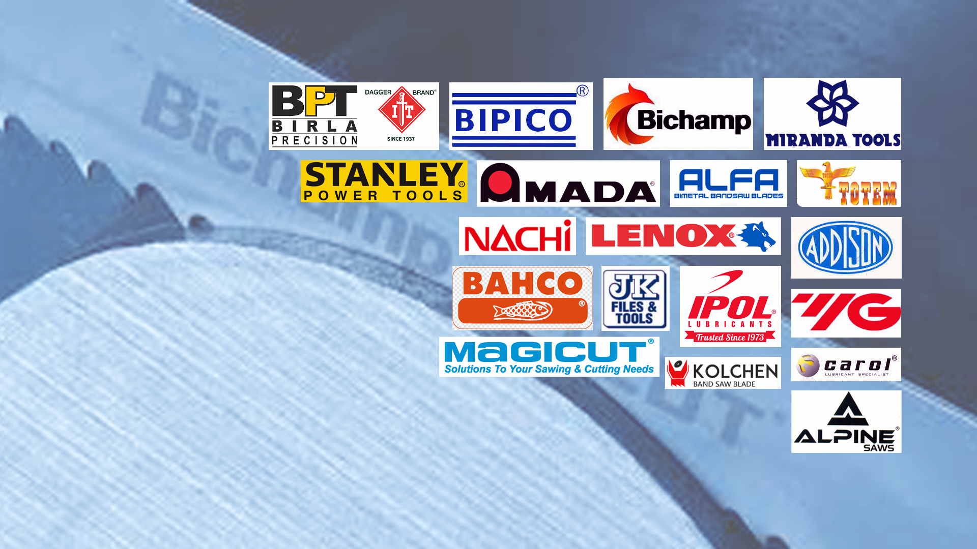 Authorized Dealer for Bipico Bandsaw Blades, Amada, Lenox, Alfa, Bichamp, Kolchan & Miranda Bandsaw Blades, Magicut, Bahco Hole Saw Blades & Alpine Saws, Totem, JK Files, Addison, YG & BPT-IT Cutting Tools, Stanley Hand & Power Tools and Ipol, Carol & Ujwal Industrila Oils.