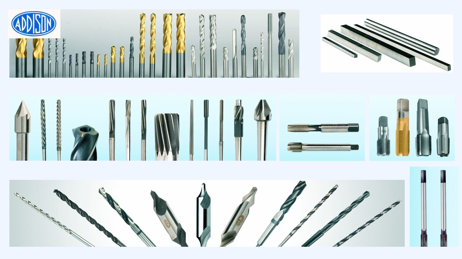 Addison is one of the leading manufacturer of HSS Cutting Tools - HSS Tools - Twist Drills, Centre Drills, Reamers, Taps, End Mills, Counter Bores, Counter Sinks, Milling Cutters, Tool Bits, Broches & Hobs and Crbide Tools - Multi-point Carbide Tipped Tools, Solid Carbide Drills, Solid Carbide Centre Drills, Solid Carbide Reamers, Solid Carbide Endmills and Machine Tools - Manual / CNC Tool & Cutter Grinder, Drill Point Grinders, Drill Measuring Instrument (Goniometer), Machine Accessories, Hardware Drills, Masonry Drills, Bimetal Bandsaw Blades and more.